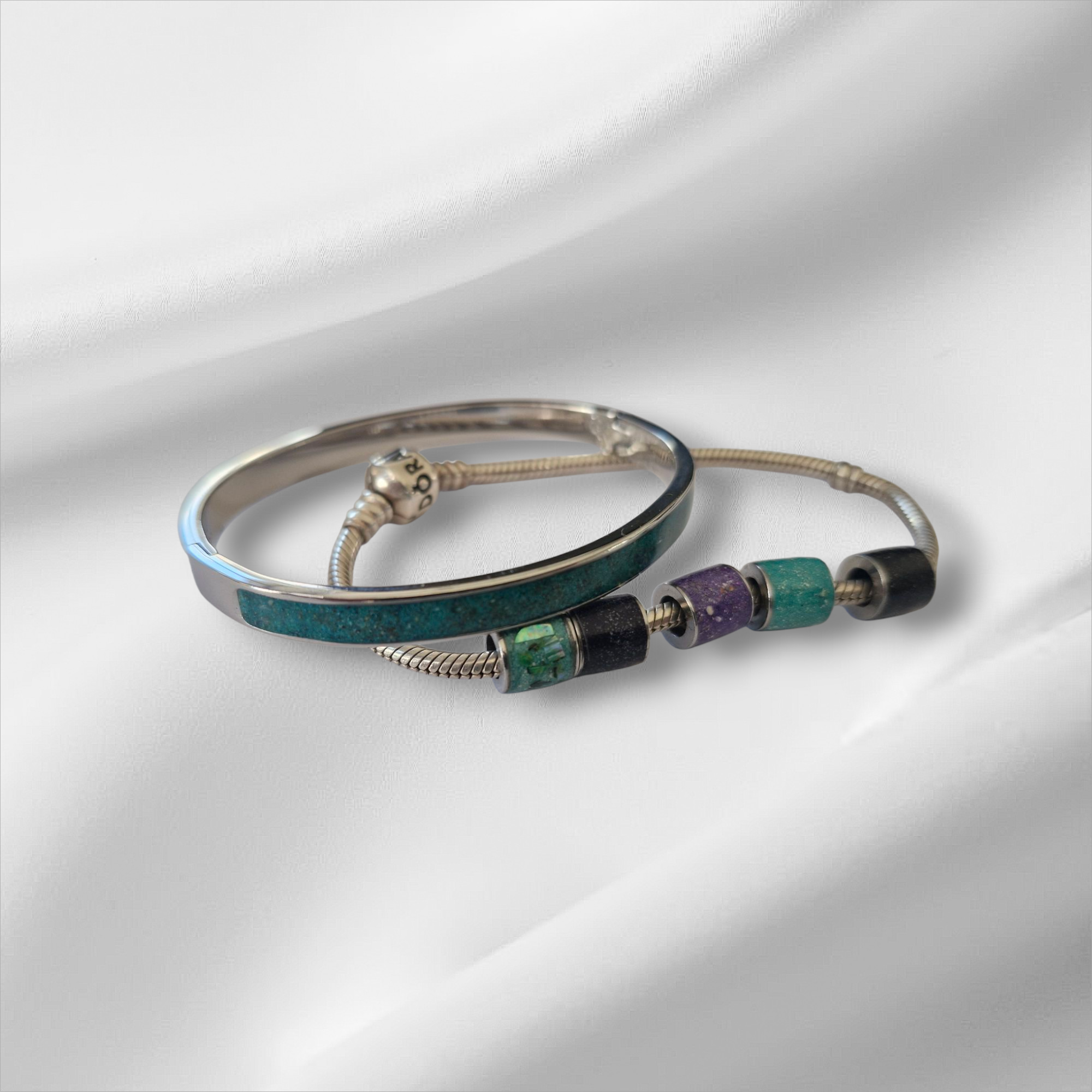 Your bracelet is individually created using the inclusions you choose, such as ashes, sand, dried flowers, or other sentimental elements. Every inlay is handled with care and respect, ensuring no two bracelets are ever the same.